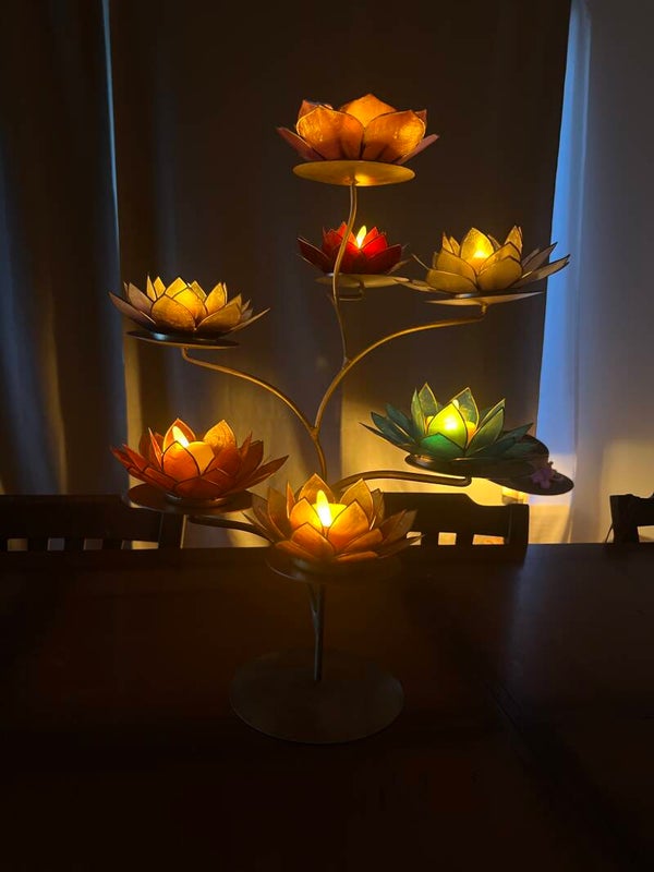 Laat je betoveren door de serene uitstraling van dit prachtige Roze lotus sfeerlicht. De lotus, symbool van zuiverheid, verlichting en innerlijke groei, komt in dit handgemaakte sfeerlicht volledig tot leven. De diepe Roze kleur straalt kalmte en vertrouwen uit, en nodigt uit tot ontspanning en bezinning.